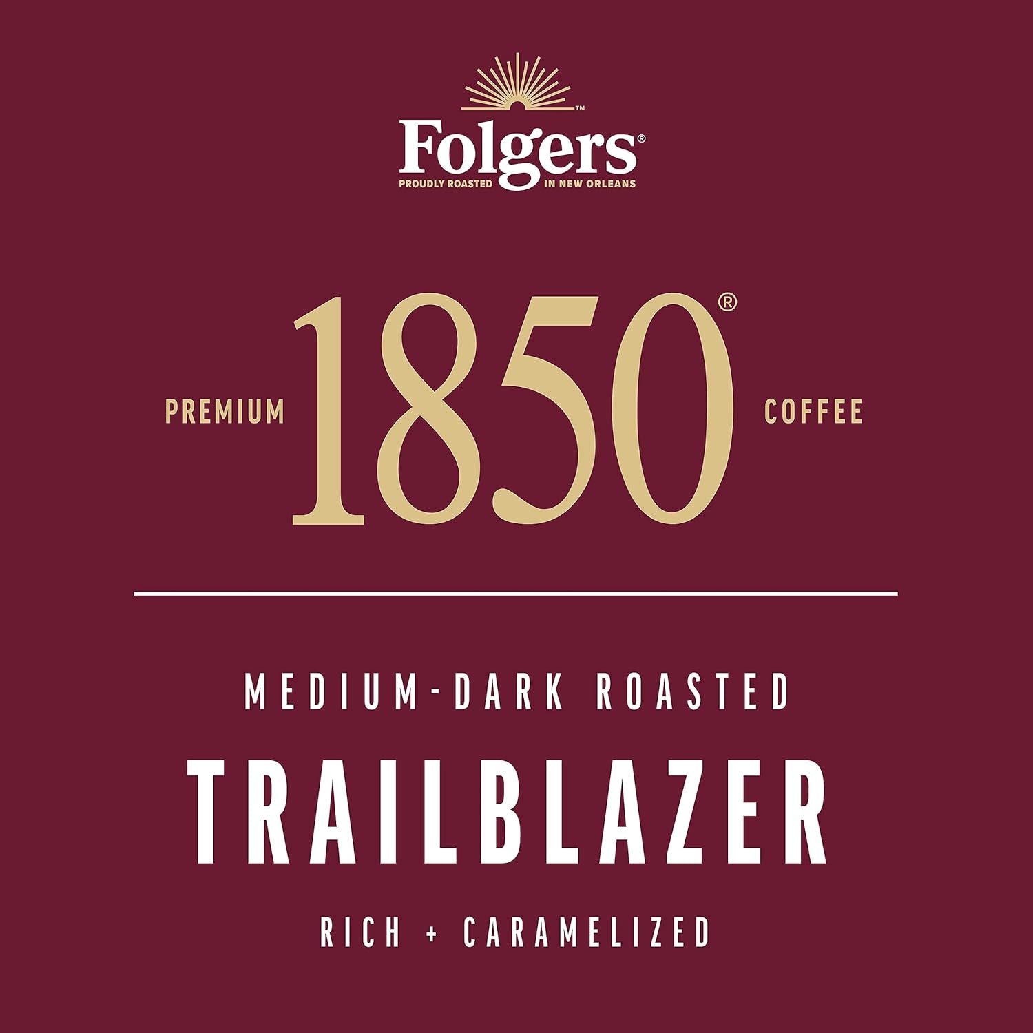 - Folgers 1850 Trailblazer Medium-Dark Roast Coffee. 12 Ounce Recyclable Canister