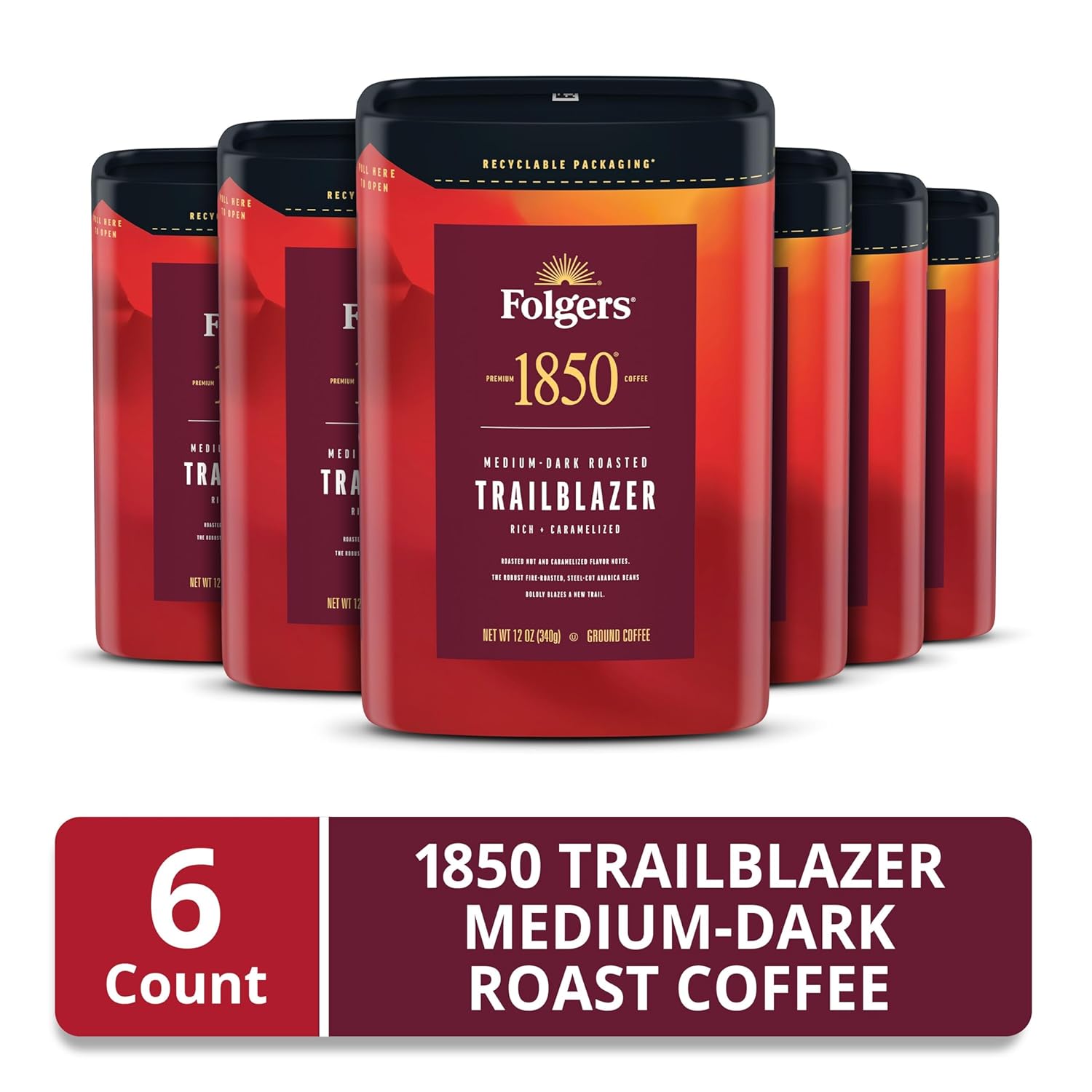 - Contains six (6) 12-ounce canisters of 1850 Trailblazer ground coffee