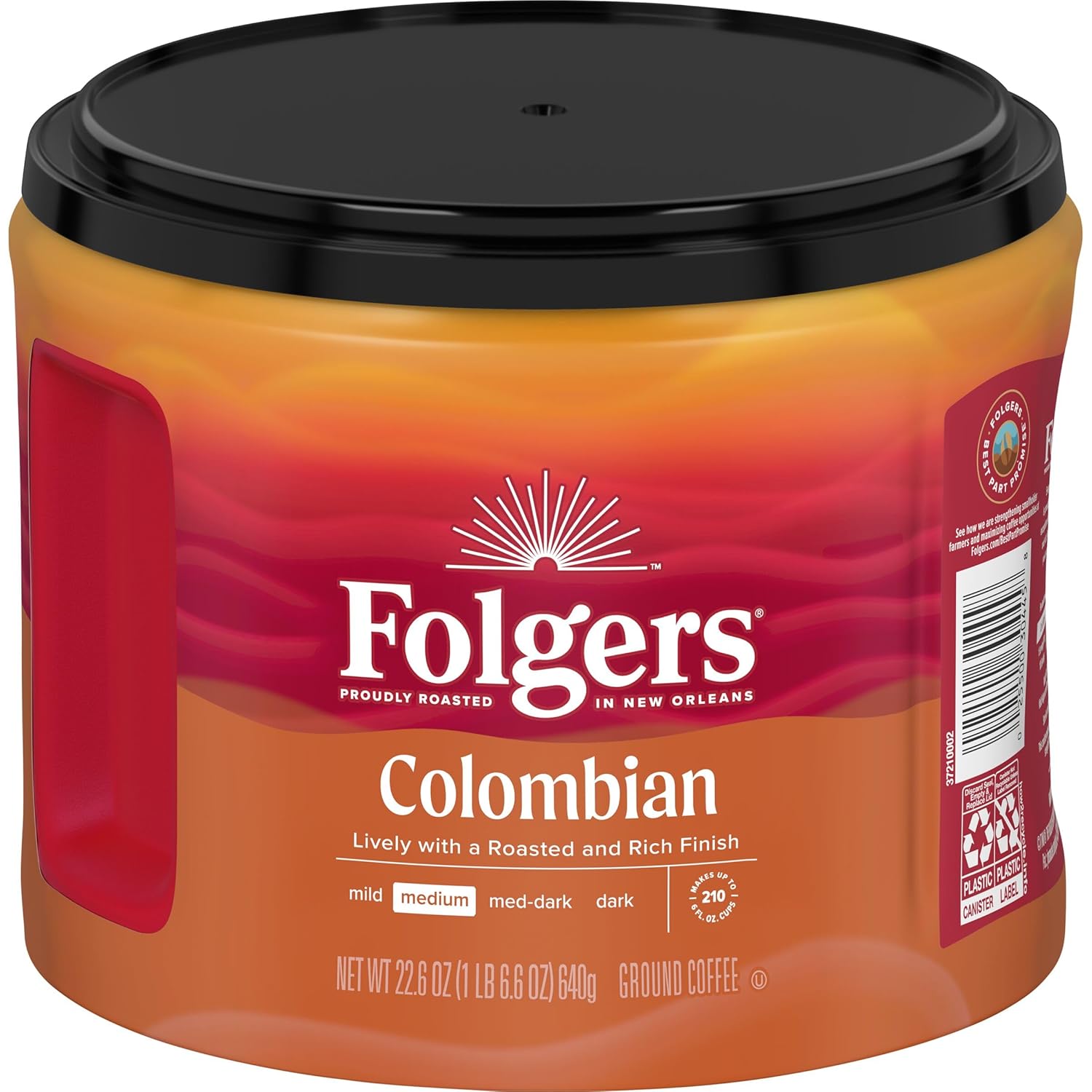 - Contains six (6) 22.6-oz. canisters of Folgers Colombian ground coffee